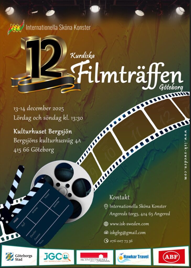 Vi har glädjen att meddela att den 12:e kurdiska Filmträffen kommer att hållas i Göteborg november 2025 i Kulturhus Bergsjön (Göteborg).